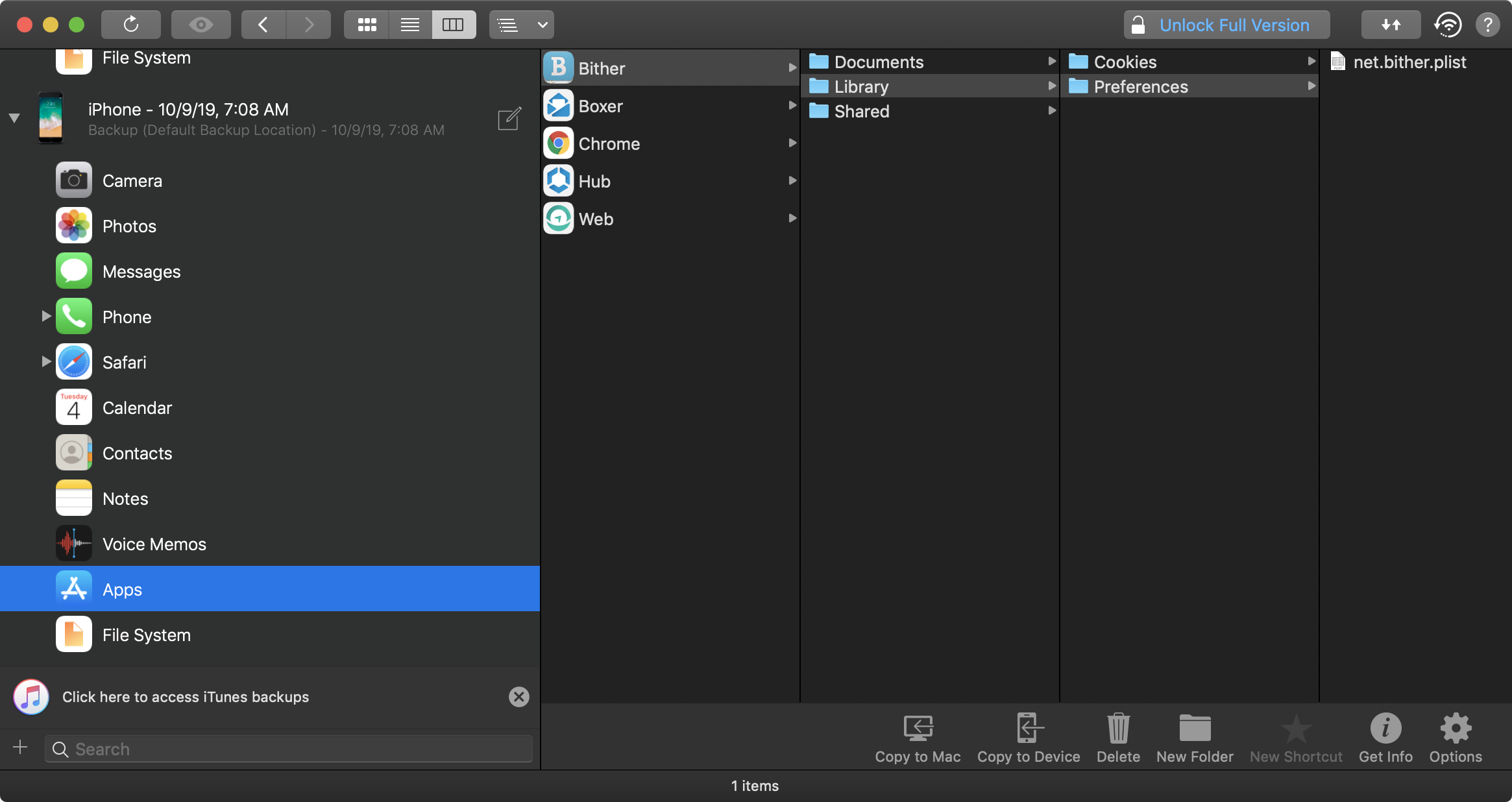 A partir daí, é possível restaurar facilmente a versão modificada do net.bither.plist de volta no dispositivo usando a versão licenciada do iMazing.
