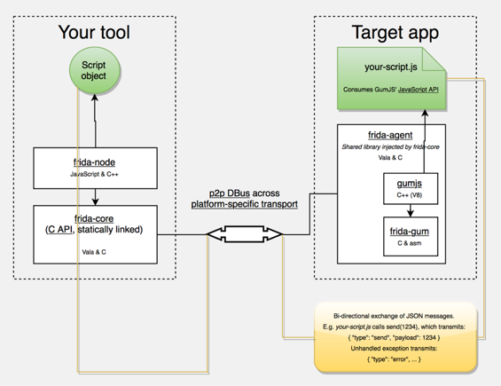 - Arquitetura do Frida, fonte: https://www.frida.re/docs/hacking/
