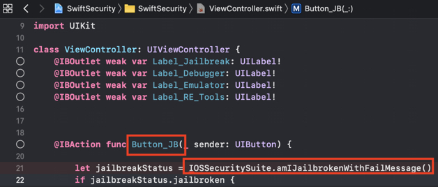 Declaração encontrada de checkDYLD (s:13SwiftSecurity30ReverseEngineeringToolsCheckerC9checkDYLD33_D6FE91E9C9AEC4D13973F8ABFC1AC788LLSbyFZ)
