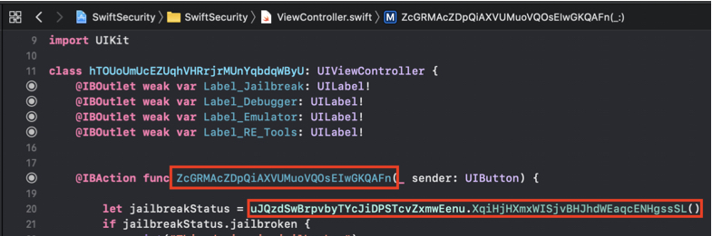 O SwiftShield agora está detectando nomes de classes e métodos e substituindo seus identificadores por valores criptografados.